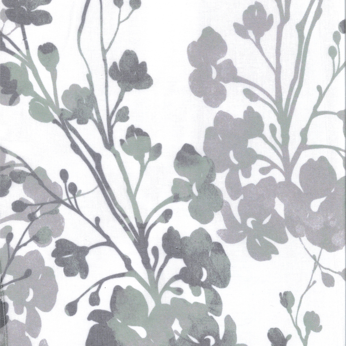 Det smukke gardin har et sart mønster af grønne blomstergrene, på hvid baggrund. Der er masser af spil i nuancerne. En pakke består af et gardin.