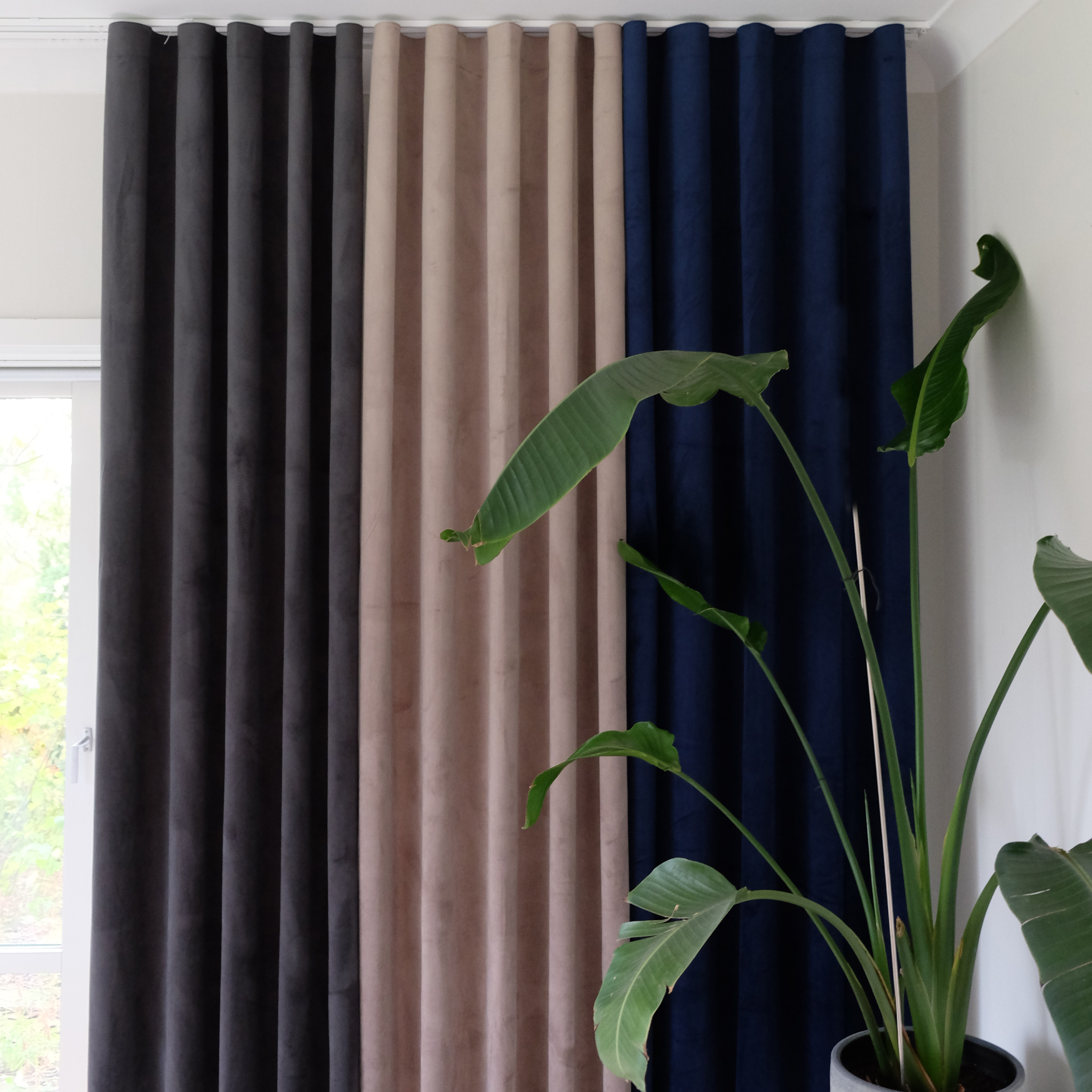 Moderne færdigsyede gardiner med multibånd.